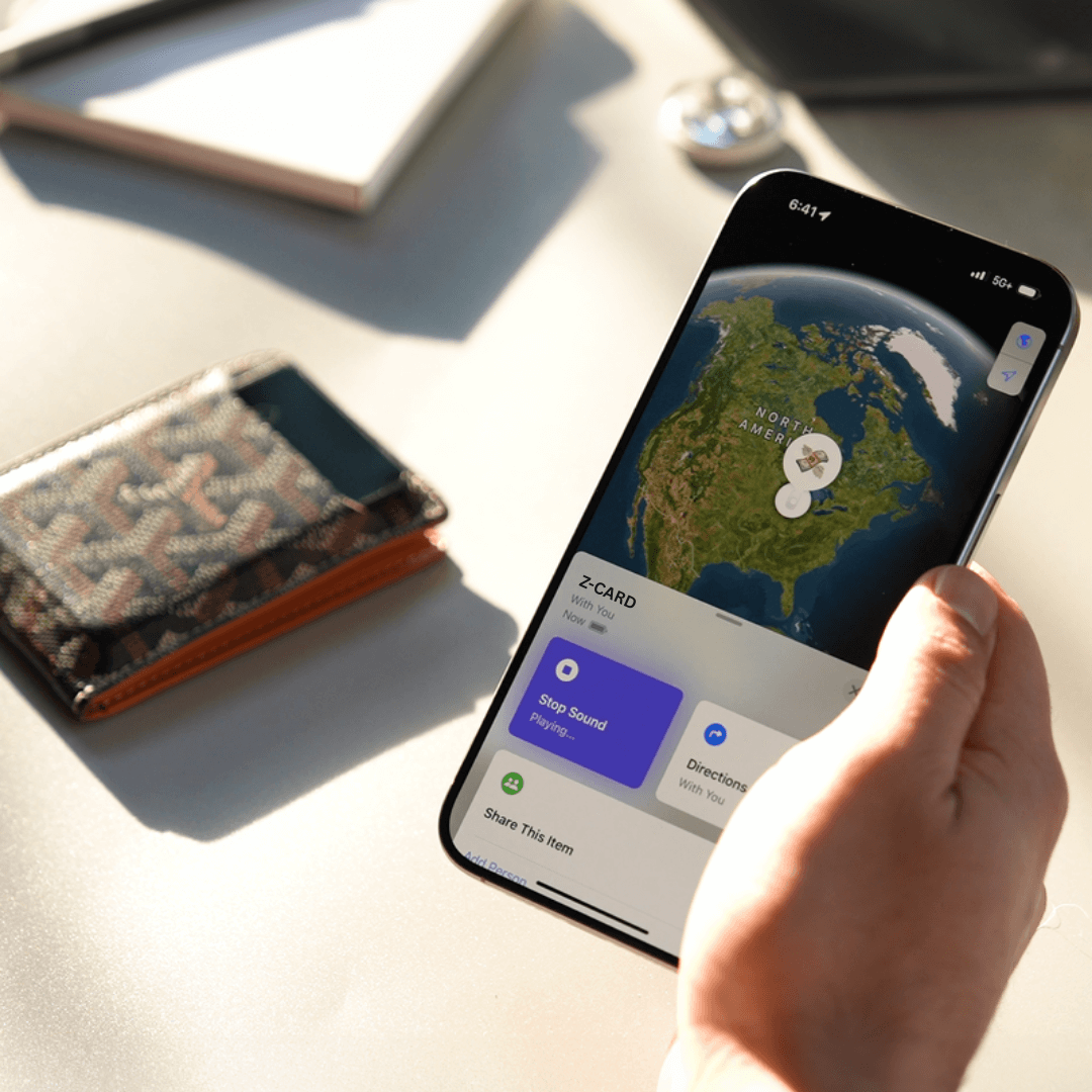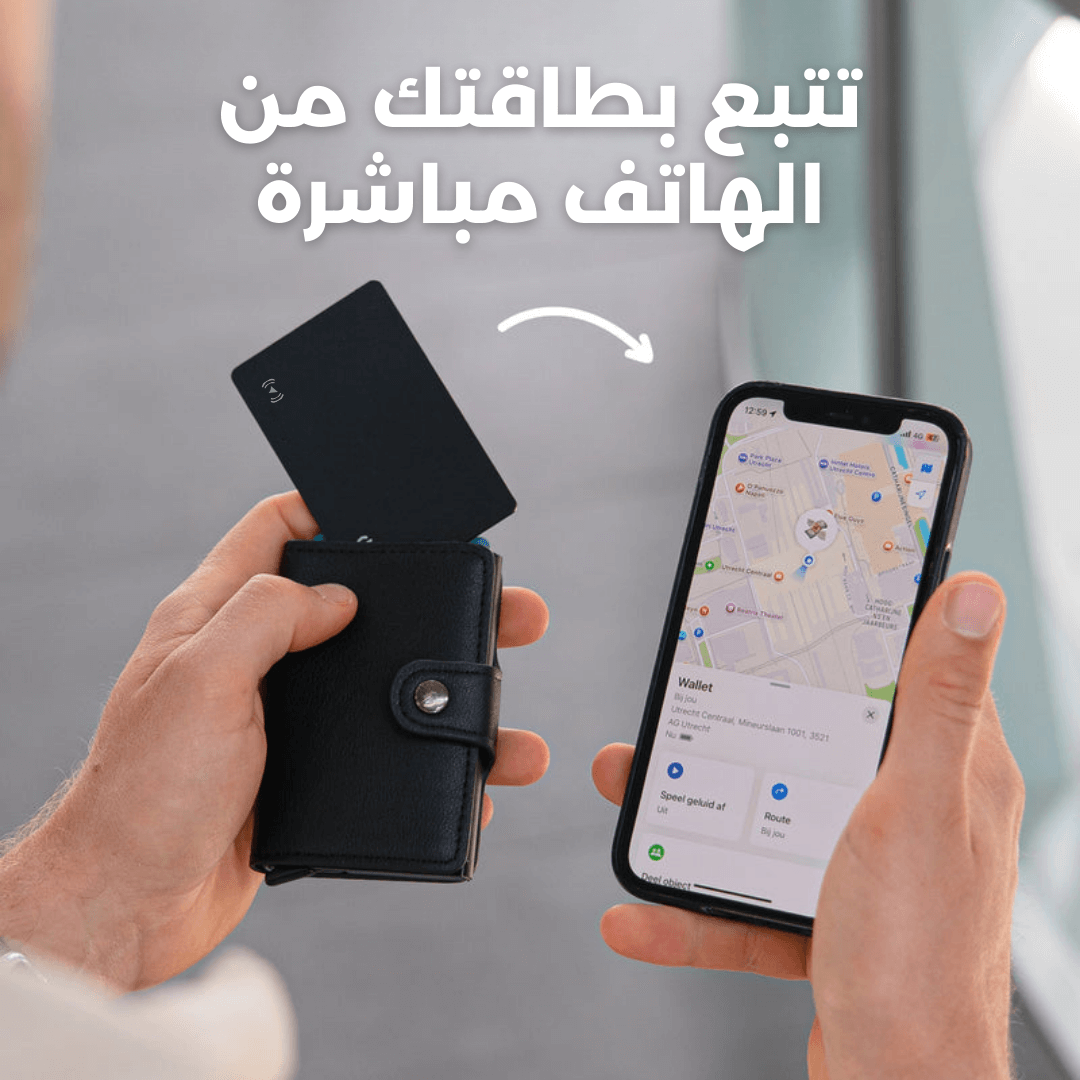 تعقب محفظتك, حقيبتك ,سيارتك والمزيد مع البطاقة الأرفع بالعالم والتي تعمل بنظام Apple Find My, بدون أي اشتركات او رسوم اضافية.