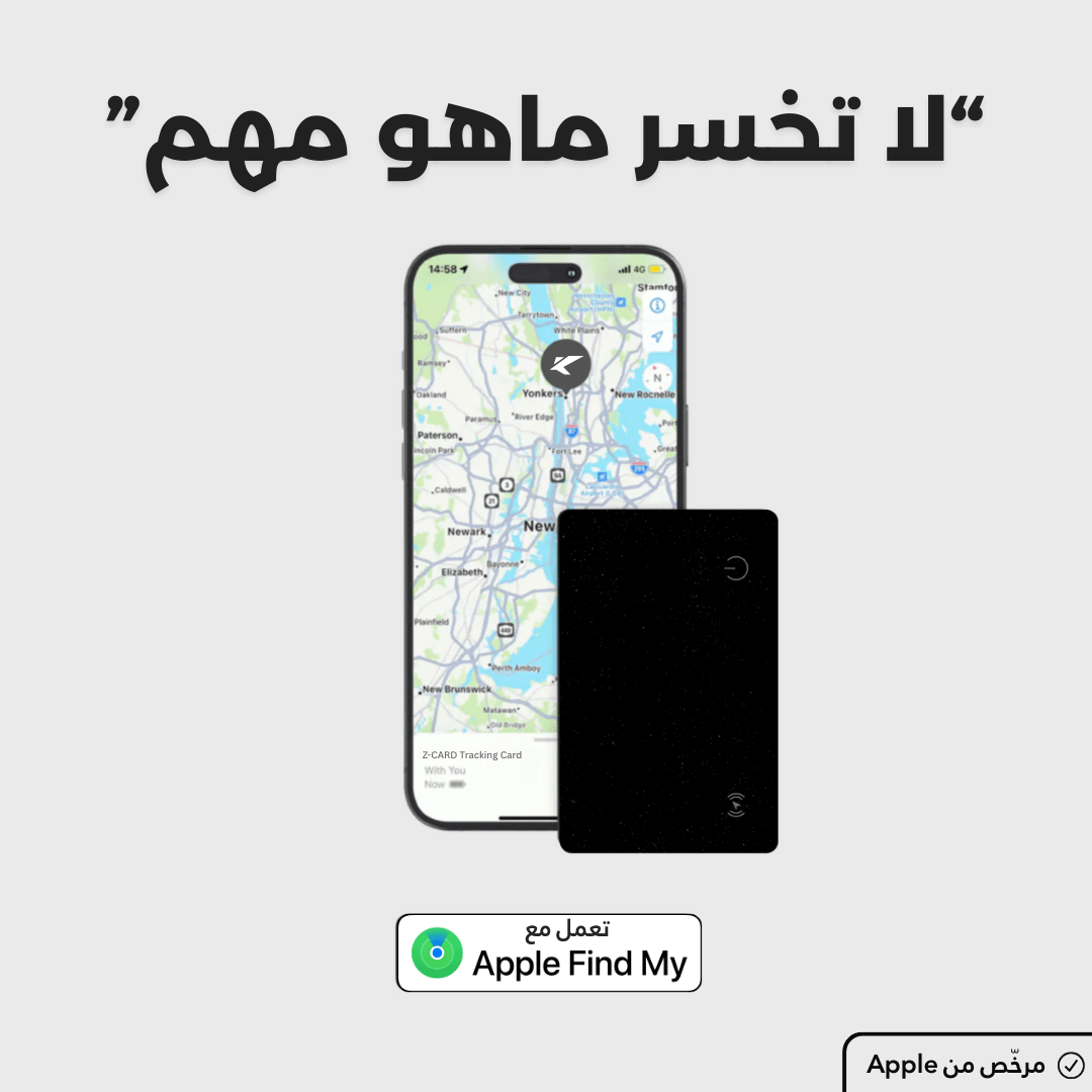 تعقب محفظتك, حقيبتك ,سيارتك والمزيد مع البطاقة الأرفع بالعالم والتي تعمل بنظام Apple Find My, بدون أي اشتركات او رسوم اضافية.