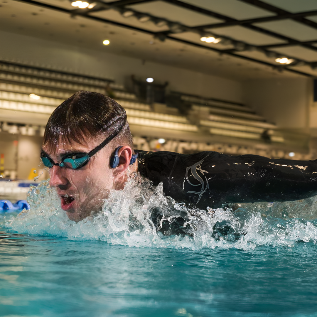 ولهذا السبب قمنا بتصميم SwimBeat Pro - مقاوم للماء، وذو أذن مفتوحة، ومدعوم بصوت الجيل التالي للحفاظ على متعة السباحة وتركيزها وتدفقها.